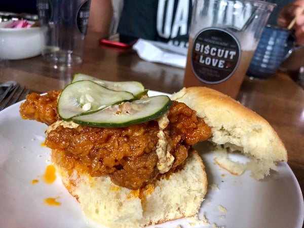 Between Hattie B’s and Prince's, I had breakfast at Biscuit Love. I had heard good things but not specifically about the Hot Chicken. They have plenty of amazing combinations on the menu, however, I, without hesitation went with the hot chicken biscuit. The biscuits are light and fluffy, pair perfectly with the spicy, crispy chicken, and the tangy pickles.