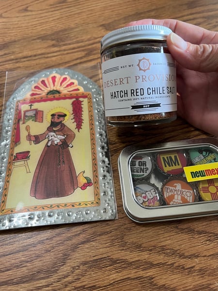 We had a little time to look around the cute shop before the class got started. As opposed to The Chopping Block, this school focuses on a selection of local ingredients, cookbooks and Santa Fe items that would appeal to tourists. It's definitely a smaller retail selection than we offer, but considering the majority of their students seem to be tourists, I think it's a smart call. Even I couldn't resist getting a few items myself! I recently tried the Hatch red chile salt on roasted broccoli, and it was delicious and the perfect balance of salty heat.