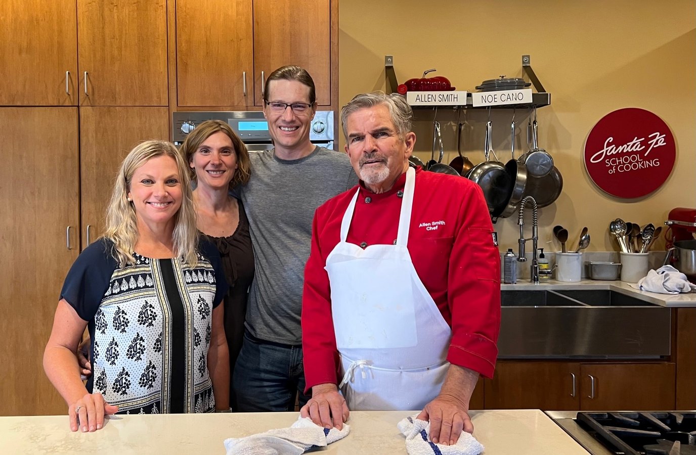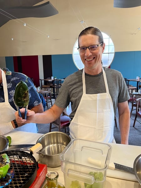 Executive Chef Allen Smith explained how a true green chile sauce has only two ingredients: chile and water but promised us the sauces we would make would be more interesting. He also discussed how to tame the heat of chiles by using salt and/or sugar. Balancing flavors is definitely something we cover in The Chopping Block's own Flavor Dynamics class.