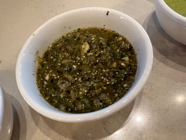 Then we added some garlic, the masa harina, green chile and coriander and added water. Once it comes to a boil, simmer for about 15 minutes. Season with salt. That's it - it couldn't be a simpler sauce that is packed with flavor!
