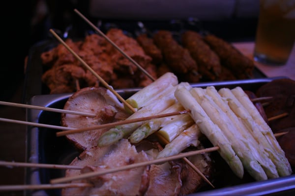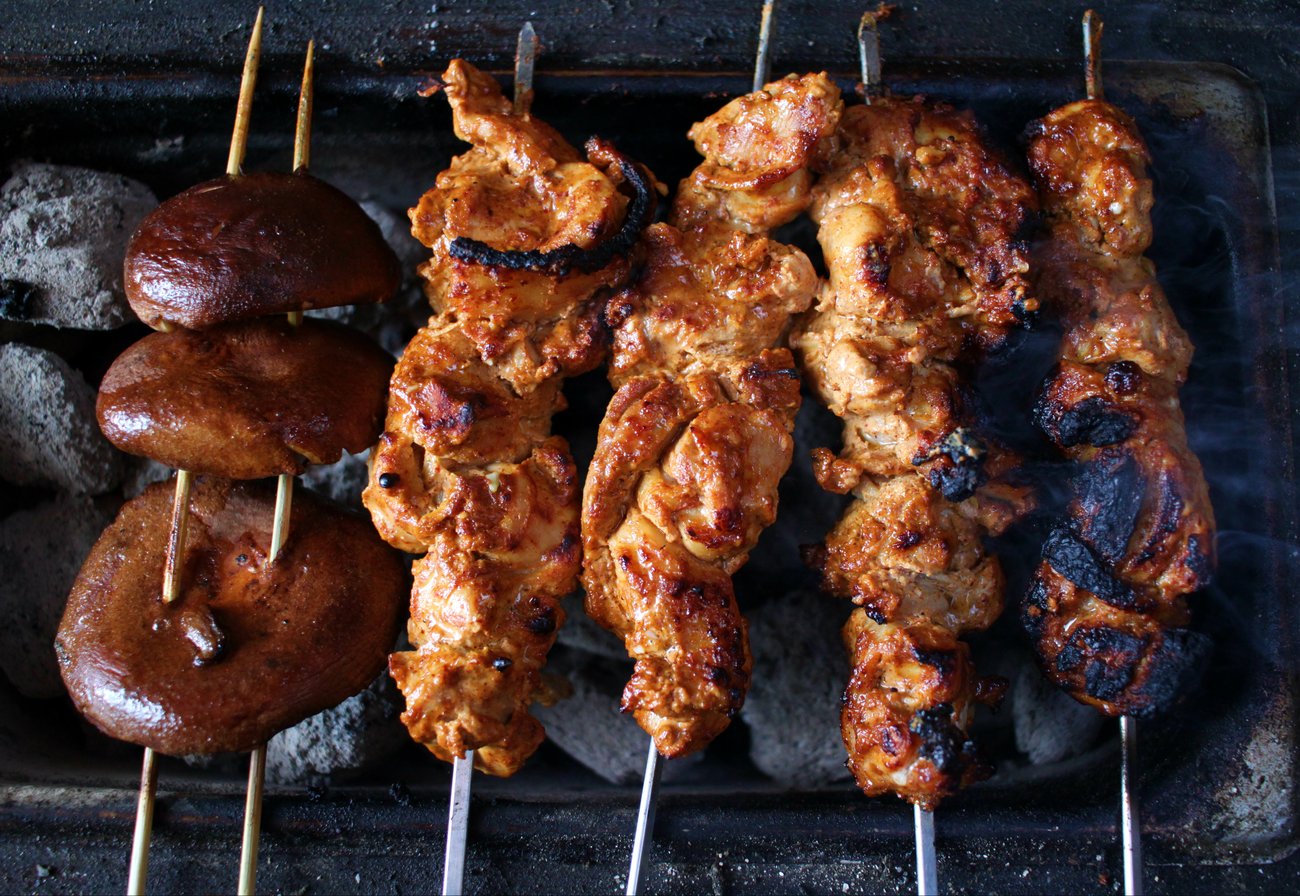 I love the idea of cooking on skewers. A lot of foods can be manipulated into a skewer format if you really put your mind to it, also there’s no grill to scrub, so the clean-up is so much easier. This time I’m doing chicken, lamb, Shiitake mushroom and asparagus skewers. Here are the recipes: