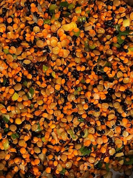 - 1 cup of black (beluga) lentils, rinsed and picked through