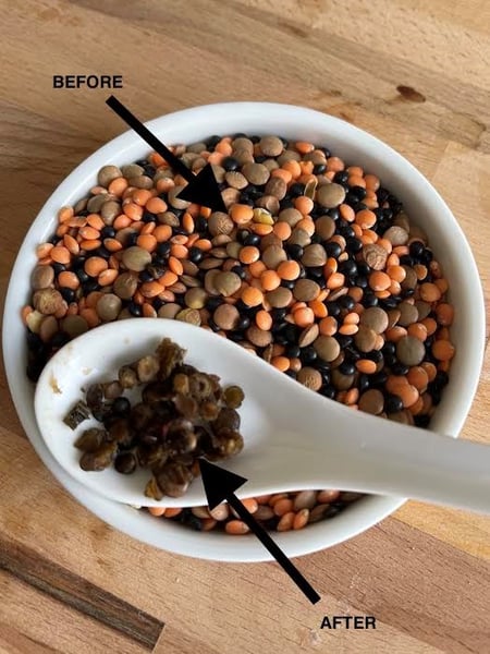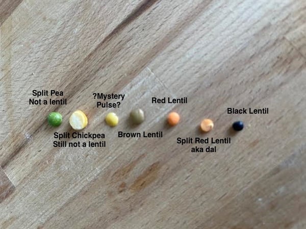 Just because you scoop it out of a bin at your local health food store doesn’t mean it is a lentil. I had a mélange of bags that I thought were all lentils, but then I looked at them all together. They were all pulses but not all lentils. (Everything you wanted to know about pulses but were afraid to ask.)