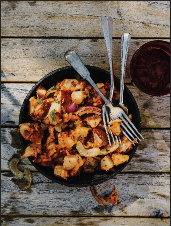 One of the great mysteries for me when I go out to traditional Korean barbecue restaurants in America is that they all serve the same generic mayonnaise-based potato salad that you can find in the deli section of any grocery store in the country. Who said potato salad was a Korean banchan (snack or side dish), anyway? I always shake my head when the mayo potato salad hits the table and think that it would be so much better to combine potatoes, which are pretty mild, with kimchi. This recipe is my chance to prove my point!