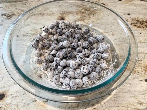 3. In a small bowl, prepare blueberries by adding 2 Tablespoons of flour and tossing gently to coat.
