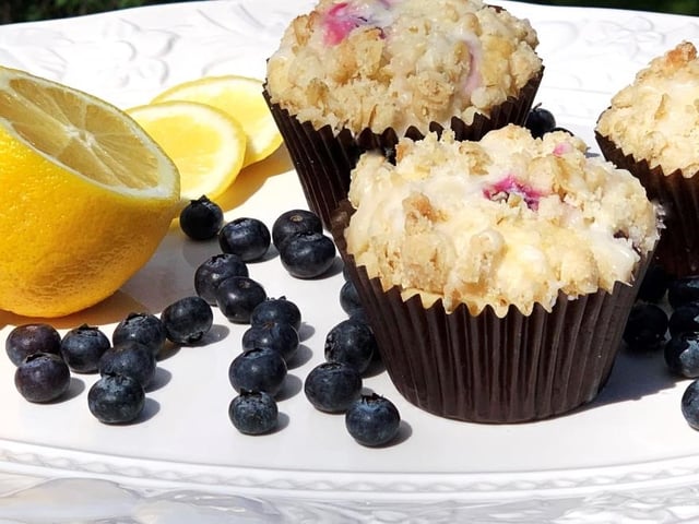 These fluffy and moist muffins are sure to become a family favorite. The pairing of bright lemon and sweet blueberry is a quintessential Spring/Summer flavor combination – and one of my personal favorites. Topped with a crunchy streusel topping and drizzled with lemon glaze, these are the Best. Muffins. Ever.