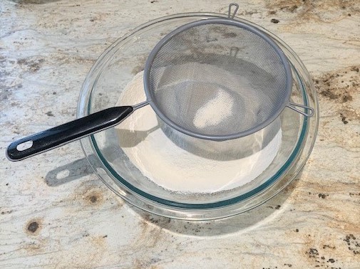 - In a medium-sized bowl, sift together remaining 2 Cups of flour, baking powder, and salt. Set aside.