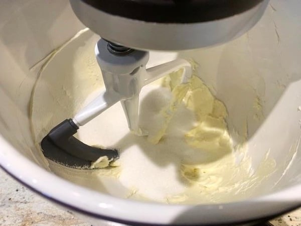 6. Add sugar to butter and cream together until light and fluffy (approximately 3 minutes).