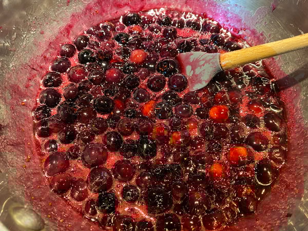 8. Bring up to a low boil and stir gently until the berries soften and release their natural juices, about 10 minutes. The consistency should remain a bit coarse. Remove from the heat and allow to cool.