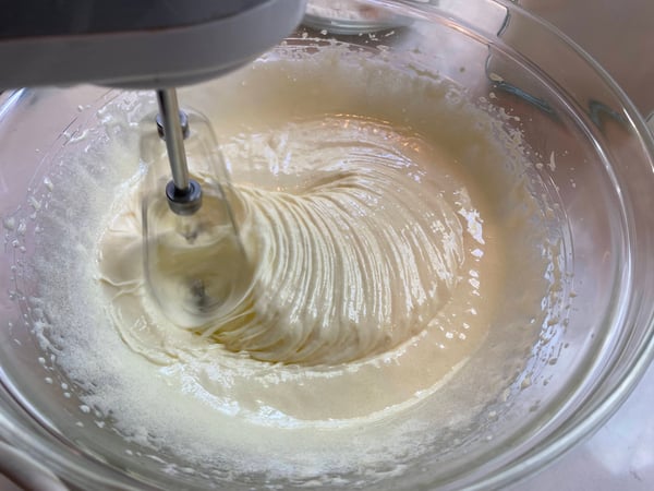 5. Add the dry ingredients to the egg mixture slowly and combine well.