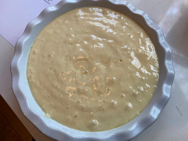 - Preheat the oven to 325º. Butter a pie pan or 8x8-inch square baking dish and set aside.