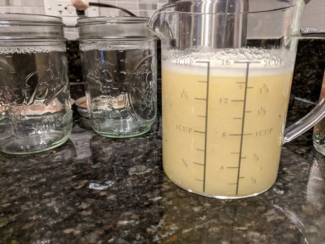 5. Pour the blended slush into a measuring cup to measure how much you have. Disperse this into your chosen vessels evenly and fill them the remainder of the way with the remaining vodka. Seal them tight and allow them to sit and meld for at least a month if not more.