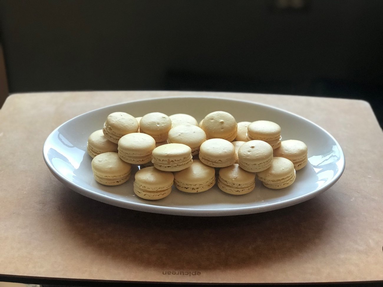 - Allow the baked macarons to cool completely. After they are cool, spread White Chocolate Lemon Ganache between two of the macaron shells and enjoy!