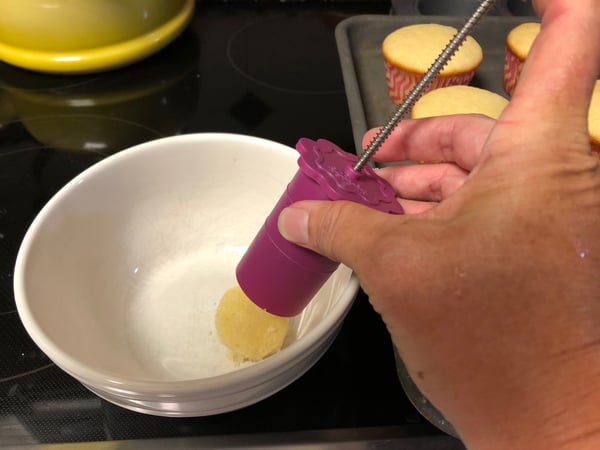 - Lift the cupcake to the side so that the cupcake stays in the plunger when you pull it out.