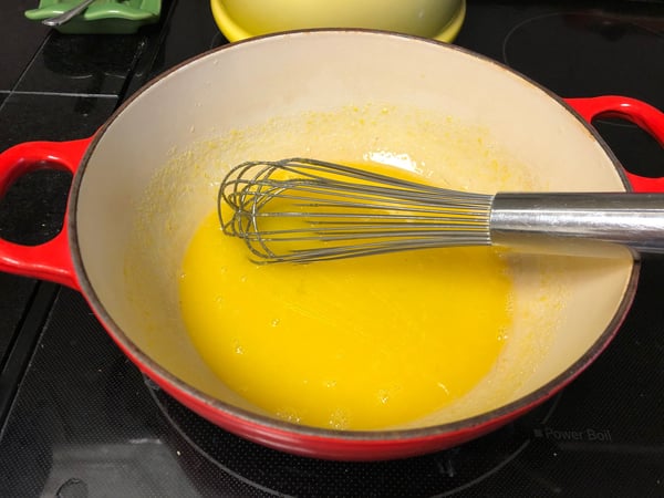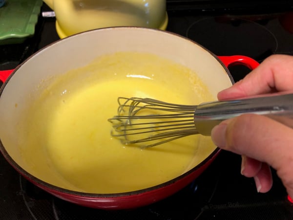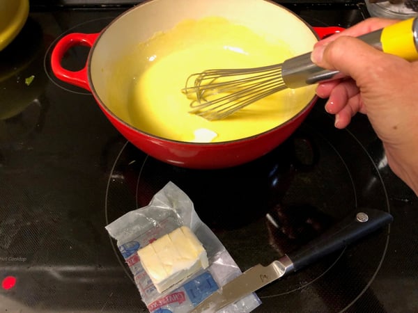 3. Whisk in the butter, one piece at a time, until smooth.