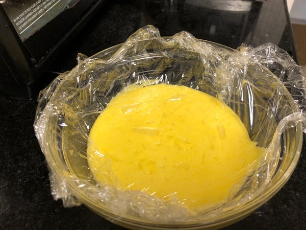 4. Press a piece of plastic wrap directly to the surface of the curd. Refrigerate the lemon curd until it completely cools and thickens (at least 2 hours) before using.