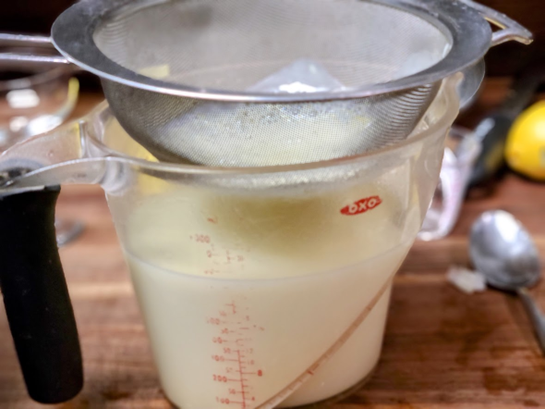 4. Let the mixture cool for 10 minutes, then strain into a liquid measuring cup for ease of pouring into the serving vessel.