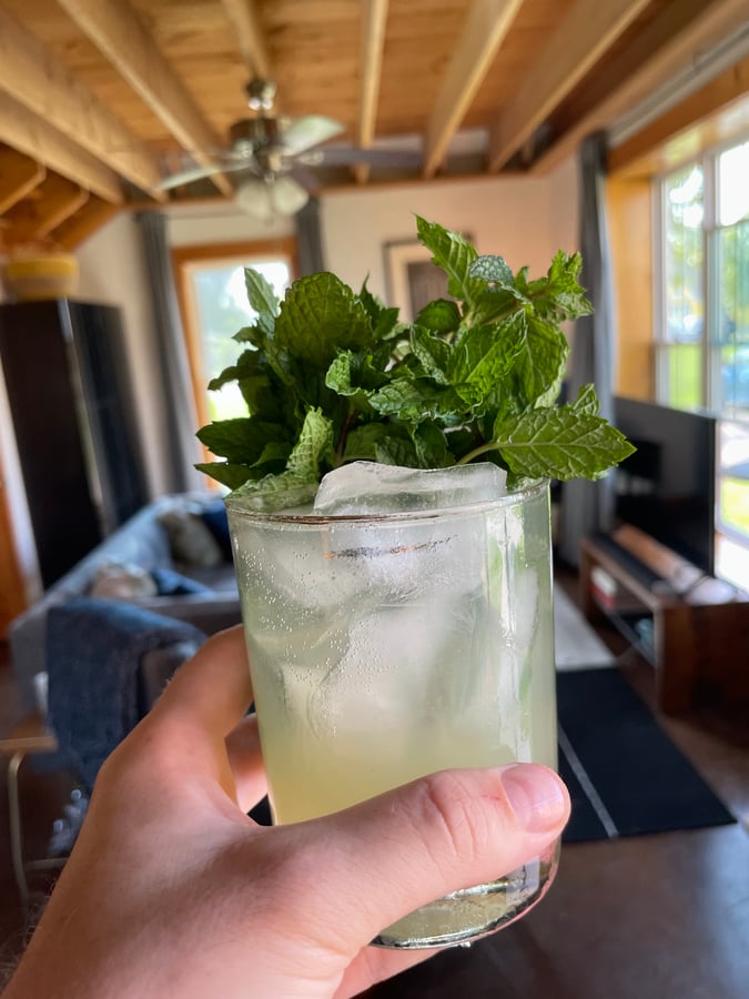 My mojito ingredients: Plantation rum, a fresh lime, simple syrup, club soda, and a handful of mint