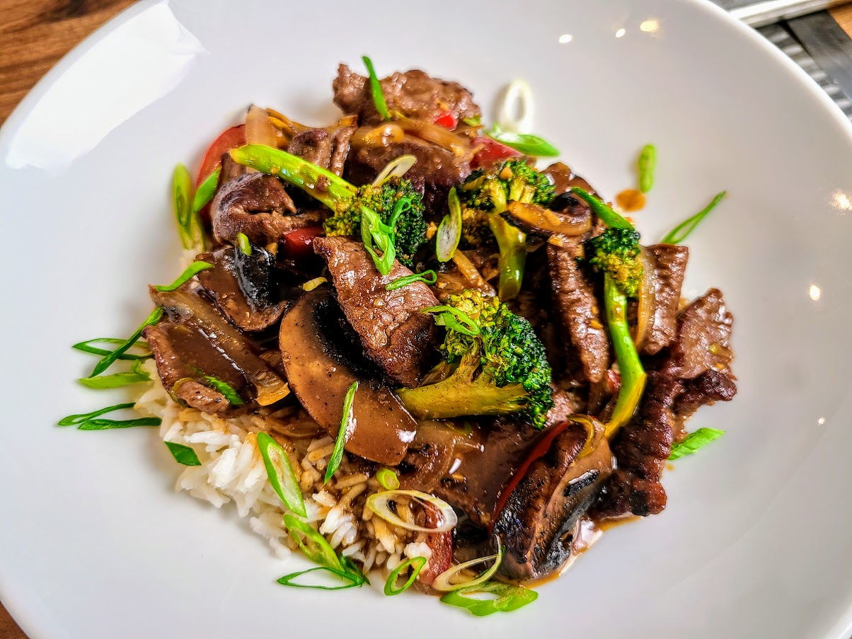 - Spoon the stir fry over steamed rice, and top with sesame seeds.
