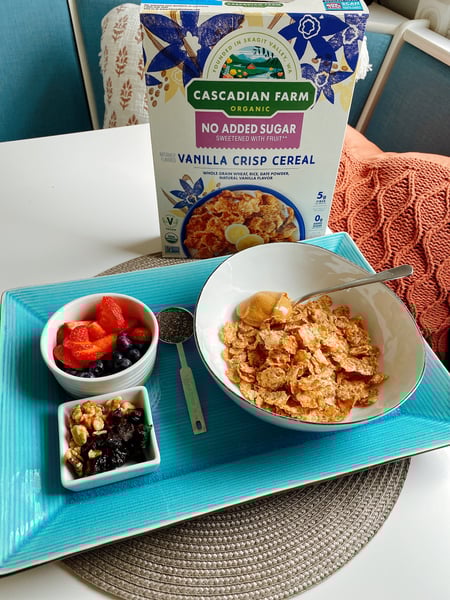 - Whole Grain Cereal (Cascadian Farm Vanilla Crisp or similar, no added sugar)