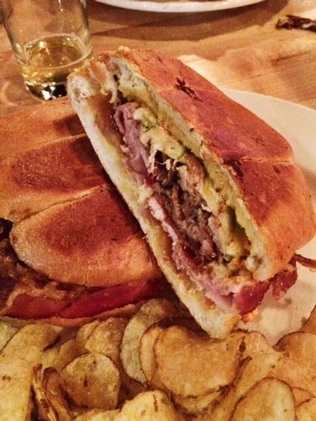 We ordered a beer flight, my brother got the Flat-Top Burger and myself The Hogunitas, a sandwich with slow roasted carnitas, Applewood smoked bacon, sliced ham, house made pickles, dijonaise, caramelized onion and Swiss cheese. Needless to say, the goodness does not stop with their beer.
