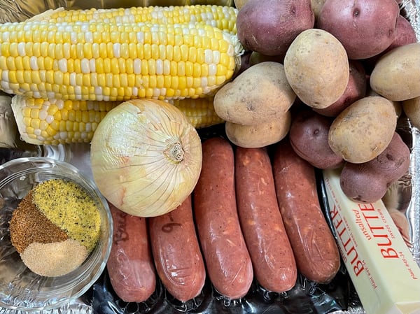 I wanted the low country boil (sausage, potatoes, corn, butter) without the mess, expense or dare I say, people. The version I came up with gave me all the “feels” but the ingredients were commonly used pantry items.