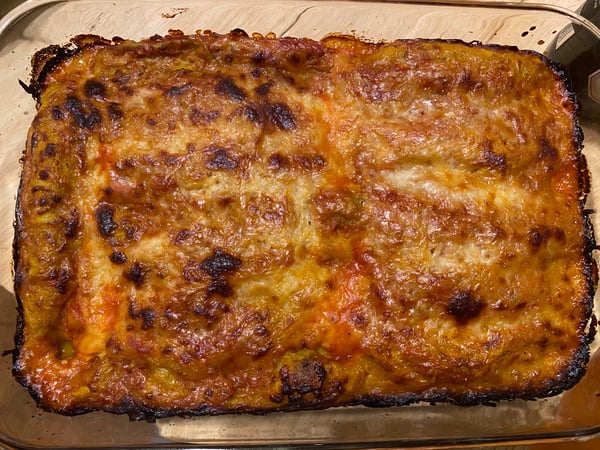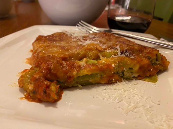 The aromas wafting through my kitchen were tantalizing and the green, red and white colors of the dish were so fun and festive. Oh, and did I mention how delicious the final product was? The pasta was cooked through perfectly and still had a bit of pleasant chew to it. The filling was light and delicate and didn’t take away from the star of the show, which was the homemade pasta. And, the ooey gooey cheese topped it all off.