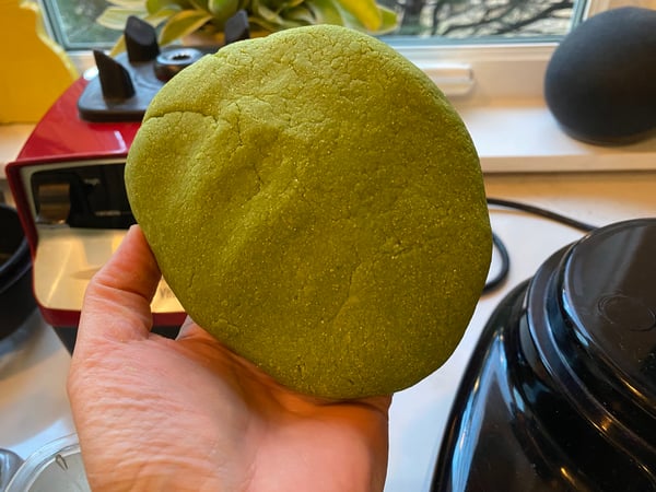 - Pour in the egg-spinach mixture and process until the dough forms a ball. Remove from the processor and place on a lightly-floured surface.
