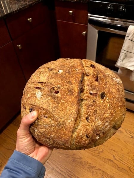 Amy especially loves baking sourdough-based breads and has had a starter for the past six months that she affectionately calls "Wilma."