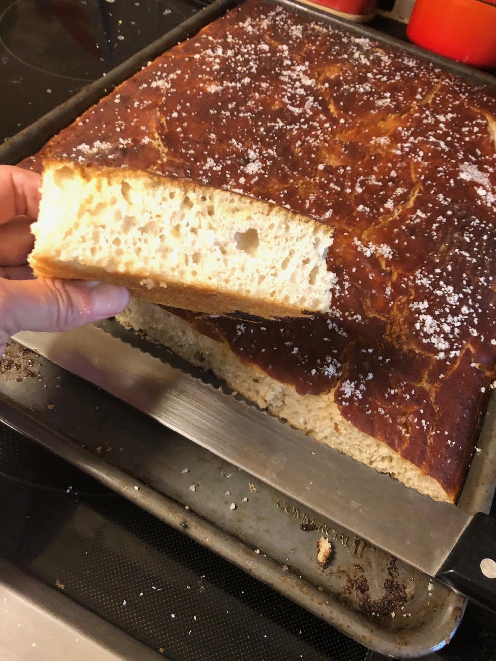 If you've joined our private Facebook group, you might be cooking even more than your standard three meals a day. After all, what good is a quarantine unless we are challenging ourselves in the kitchen? This week's challenge answers the craving everyone seems to be having right now: baking bread. I got in the spirit by trying out a new focaccia recipe I had seen online at Bon Appetit.