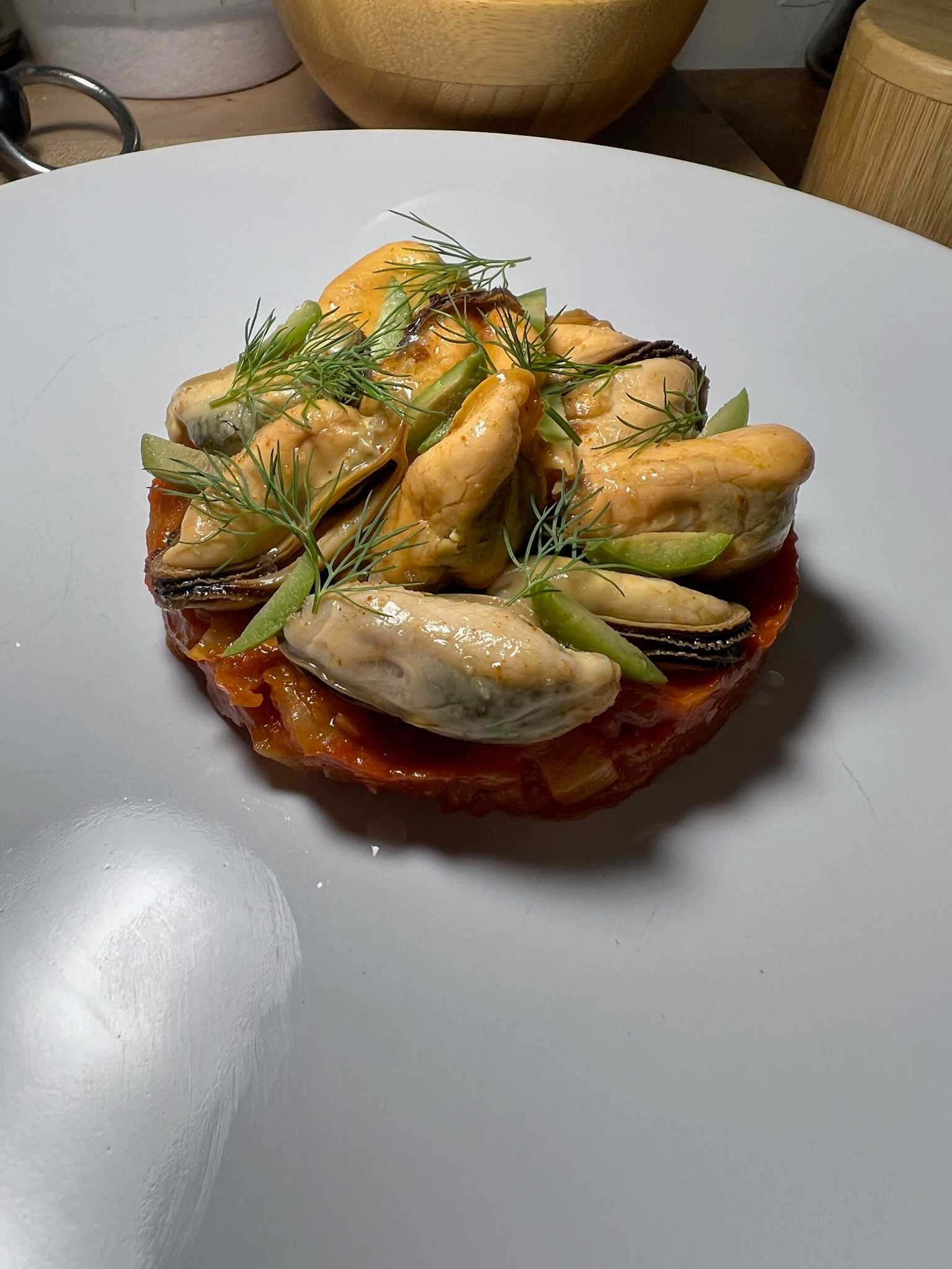 Picture this: you’re the chef of a restaurant where you have a steamed mussels dish on the menu. You got your shipment of mussels on Friday, and the restaurant had a slower weekend than expected. It's Sunday evening and the restaurant is closed on Mondays and Tuesdays, but you have a few pounds of mussels left over. What do you do knowing they might not survive until Wednesday? Mussels Escabeche is the answer!