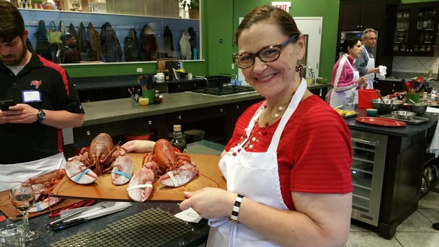 One of the great benefits of working at The Chopping Block is free cooking classes. We are allowed to take any class at no charge for added experience that we can take back to our positions. I have taken several classes that were very good but the lobster class was by far the most rewarding and educational.