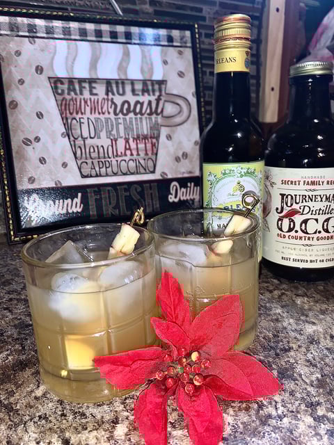 My newfound obsession this season has been Journeyman Distillery’s Old Country Goodness apple cider liqueur. It’s the perfect combination of a smooth apple cinnamon taste and when paired with a feast, it's the highlight of the party. I had some friends over the other night so I decided this would be the perfect opportunity to test out this liqueur on everyone. I thought pairing it with bourbon sherry would be an interesting duo for a cocktail. This specific bourbon sherry is versatile so I thought it would be a great mixer to enhance the delicious flavor; I'm calling my creation the Apple of my Eye.
