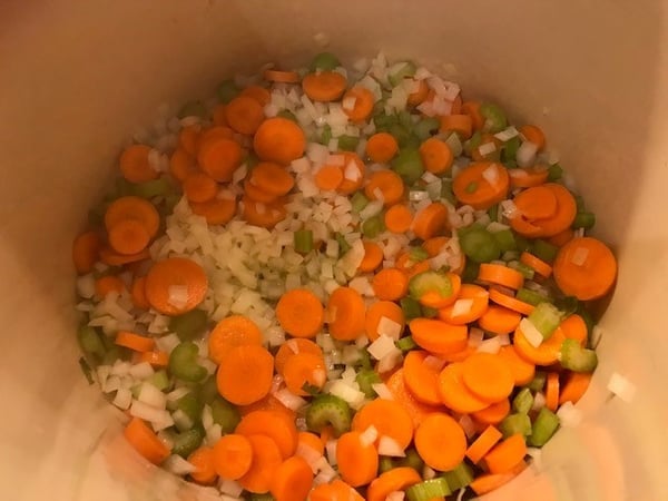 1. In a large stock pot over medium heat, add oil and sauté onion, carrot, and celery until tender, about 5 minutes.