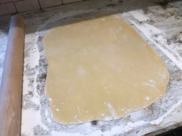 5. Roll out dough into a large rectangle, making sure that the dough is thin, about 1/8” thick.