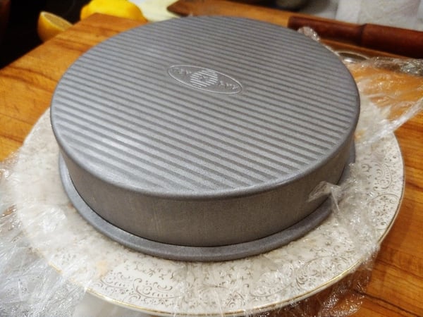 Then I just lifted the pan right off. Since the pan was lined with plastic wrap, there was no worrying about any sticking.