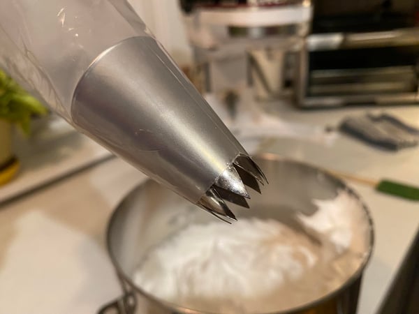 Once your egg whites are holding stiff peaks, you can either pipe the meringue on top of the chilled curd, spread the meringue on top with a spoon or spatula, or use a spoon to make whimsical dollops.