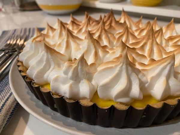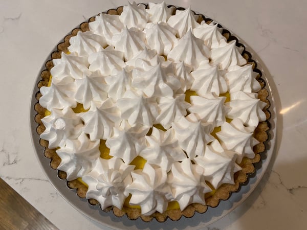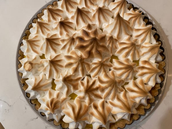 - Slide the tart under the broiler and broil until the meringue is golden brown and toasty.