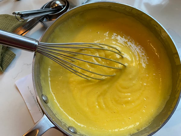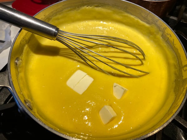 Once thick, remove the curd from the heat and whisk in the butter until fully incorporated.
