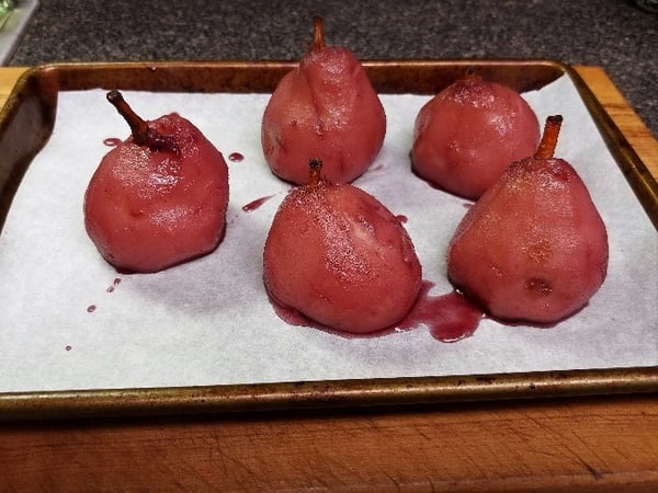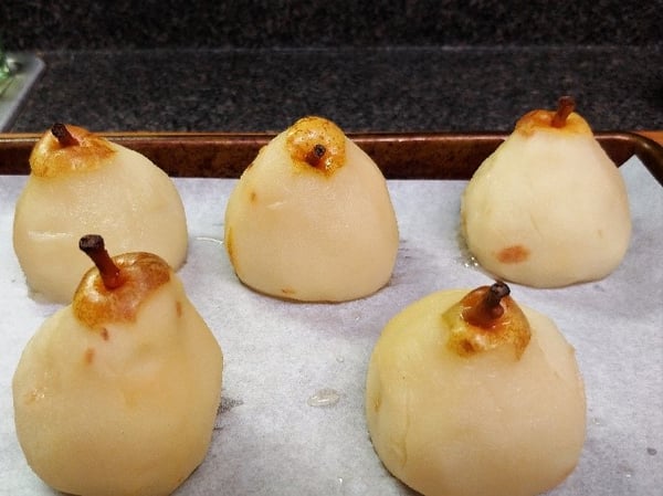 Make sure that you buy pears with the stems intact and that they are at room temperature when you start to work with them.
