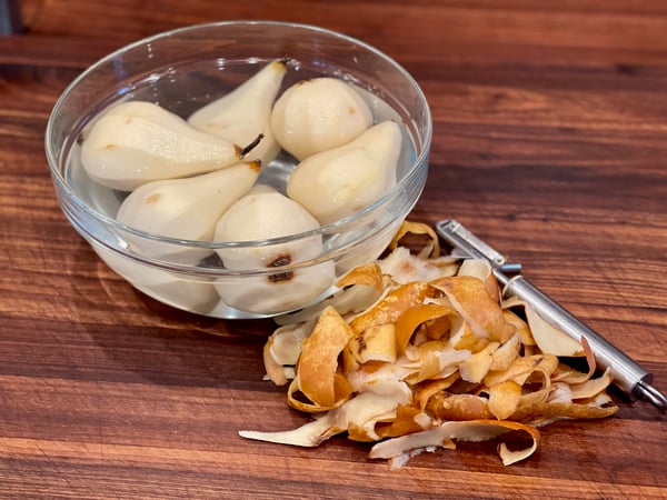 - Cover the pears in cold water with a teaspoon of lemon juice in it to keep them from browning.