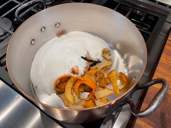 *I like to add fruit peels to the poaching liquid as it adds a lot of flavor.