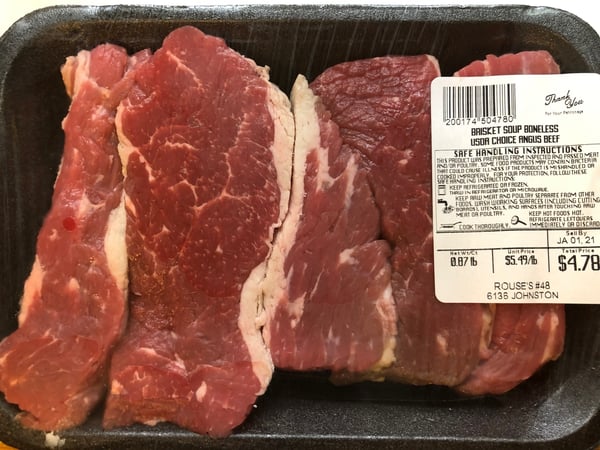 - 1 pound boneless beef brisket, chuck or cross-rib roast