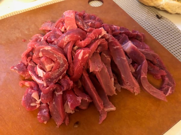 9. Slice the remaining beef very thinly across the grain and add to the broth with the sliced onion. The broth should be hot enough to cook the beef through as it sits in the broth. If not, turn on the Sauté function for a few minutes until the beef is cooked.
