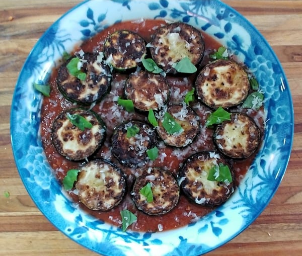 Zucchini season is upon us once again, and I’d like to share with you my go-to ways to prepare it. It’s easy and versatile and the char on the zucchini makes it pretty enough to serve to company. It makes for a great side dish all on its own or you can serve it in any number of ways: with salad greens, over pasta, or nestled into your favorite tomato sauce to name just a few. You can sauté the zucchini on your stove top (as I’ll describe here) or you can grill it. There are so many ways to “make this your own” many times over, depending on your mood, what you have on hand, or the occasion!