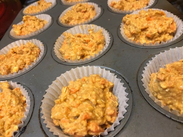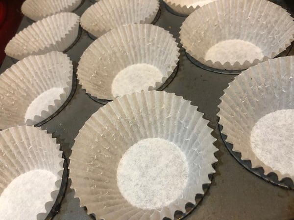 - Portion pupcakes into paper liners using a scoop to ensure even pupcakes.