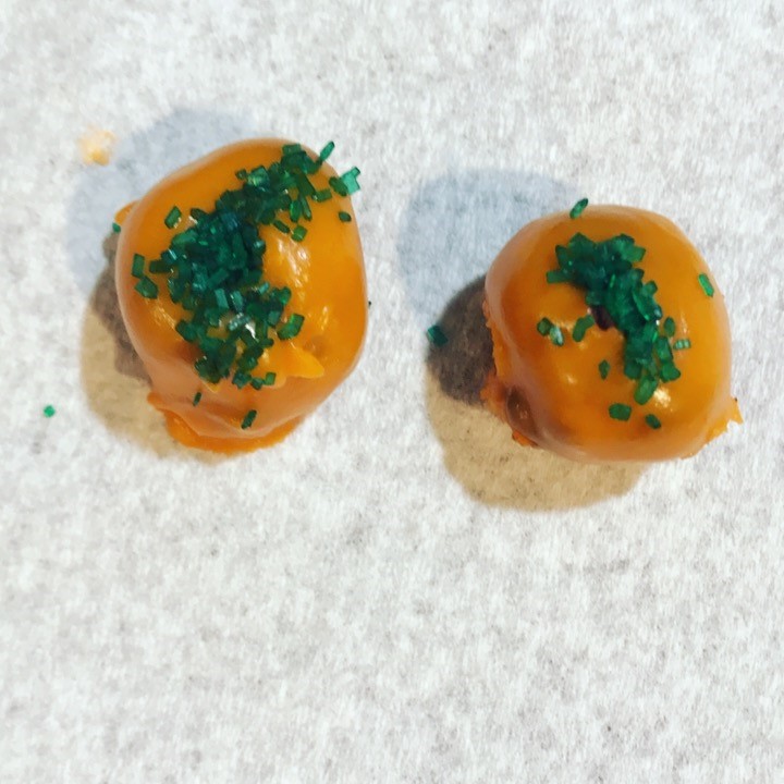 - Optional: melted Vegan white chocolate dyed orange, and green sanding sugar