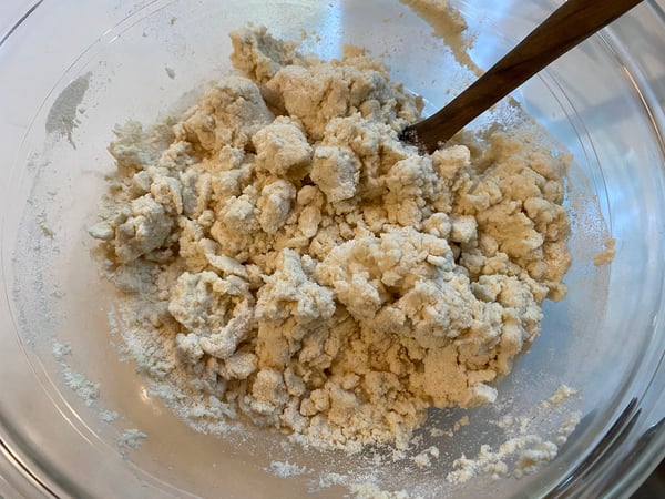 - Divide the dough into 8 pieces, and cover them loosely with plastic. Pat one piece of dough into a ball, and then flatten into a disk. While flattening into a disk, form the dough into a cup.