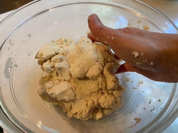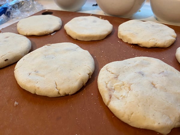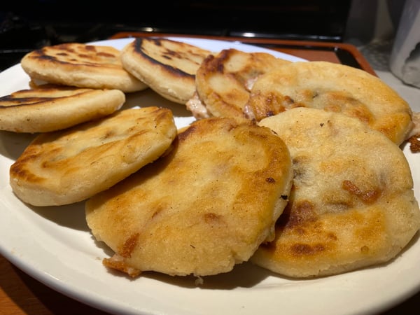 Now for the assembly. I was a bit intimated for this step because it was my first time making Pupusas, but thankfully my husband, who is a chef instructor at Kendall College (and who made a couple of cameos in season 2 of The Bear!), teaches an international cuisine class and has Pupusa-making experience.