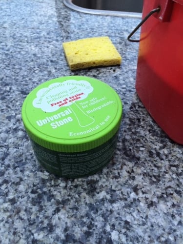 At The Chopping Block, we use an all-natural cleaner called Universal Stone to polish and shine many surfaces. It comes packed as a compressed block of powder, and all it takes is a little water and a sponge to apply.